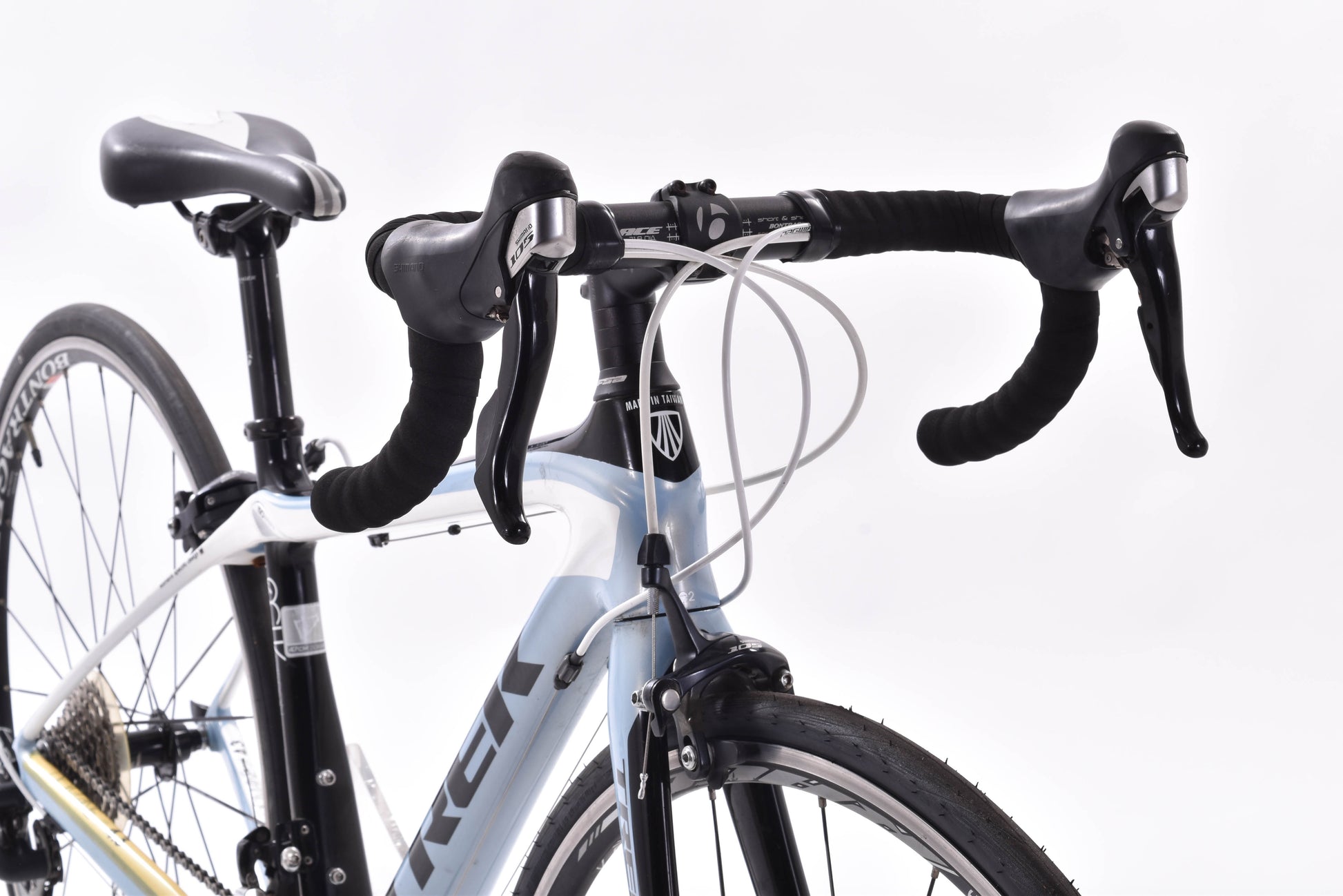 - Seatpost: Bontrager, carbon, with setback